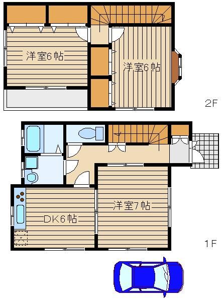 | 築年月 | 2002年3月 | 間取り | 3DK( 洋室7畳(1階)/洋室6畳(2階)/洋室6畳(2階)/DK6畳(1階) ) | 専有面積 | 66m2 |