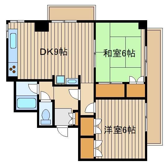 | 築年月 | 1988年4月 | 間取り | 2DK( 洋室5畳/和室6畳/DK9畳 ) | 専有面積 | 56.03m2 |