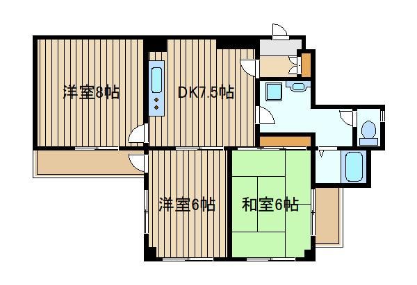 | 築年月 | 1992年1月 | 間取り | 3DK( 洋室8畳/洋室6畳/和室6畳/DK7.5畳 ) | 専有面積 | 62m2 |